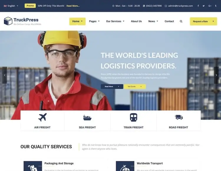 Several themes, such as Logistic Business and TruckPress, include multilingual support, ideal for companies serving international clients.